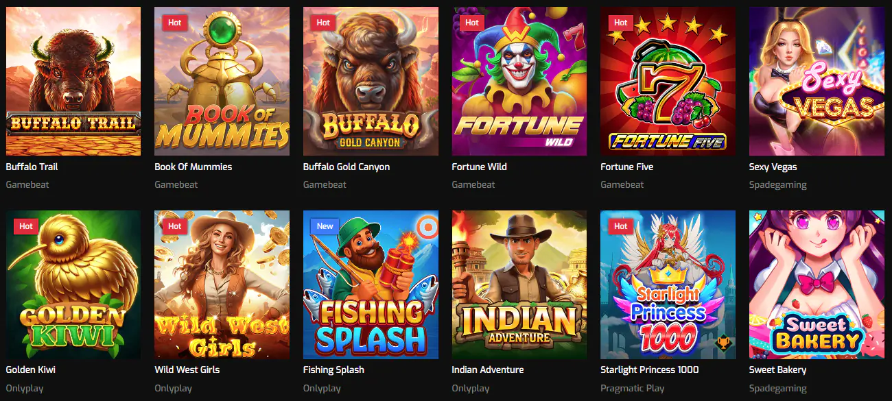 Sektionen för Bonus Buy-spel på Hugo Casino innehåller över 200 titlar där du kan köpa dig direkt in i en bonusrunda. Denna funktion ger möjlighet att utforska spelets högvinstläge utan att behöva vänta på att bonusen ska aktiveras slumpmässigt. Bonusköp är populärt bland erfarna spelare som vill testa strategier och analysera spelens volatilitet.